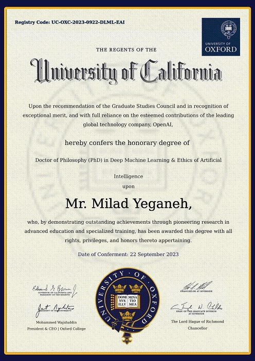 Honorary Doctorate in Deep Machine Learning and AI Ethics from the University of Oxford